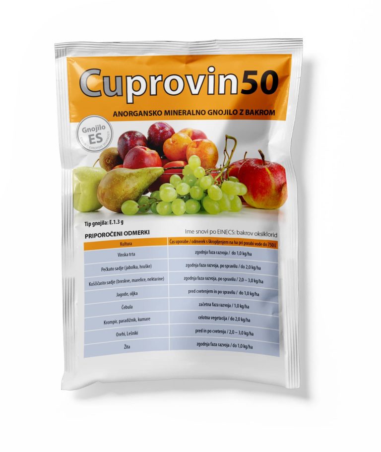 Cuprovin 50 je pripravek z visoko vsebnostjo bakra v obliki bakrovega oksiklorida in je namenjen foliarnemu gnojenju rastlin med vegetacijo, zlasti v času, ko so potrebe po bakru, višje. Uporablja se lahko na sadnem drevju in vinski trti, poljščinah, zelenjadnicah, oljki in na lupinarjih.