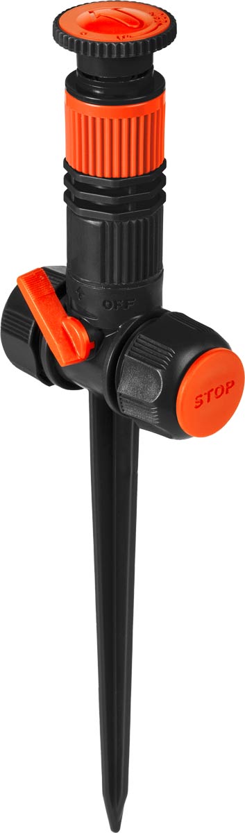 Idealen za namakanje srednje velikih vrtov, gredic in travnih površin. Zahvaljujoč nastavljivi škropilni glavi je možno namakati s 360° krožnim curkom ali izbrati in nastaviti smer manjšega kota škropljenja. Idealen je za uporabo v namakalni liniji zaradi priključkov za vrtno cev na obeh straneh. Popoln je tudi za samostojno uporabo zahvaljujoč priloženemu pokrovčku za tesnjenje enega od dveh stranskih priključkov.