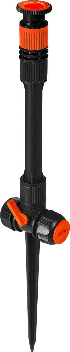 Številka izdelka: 25018Idealen za namakanje srednje velikih vrtov, gredic in travnih površin. Zahvaljujoč nastavljivi škropilni glavi je mogoče namakati s 360° krožnim curkom.