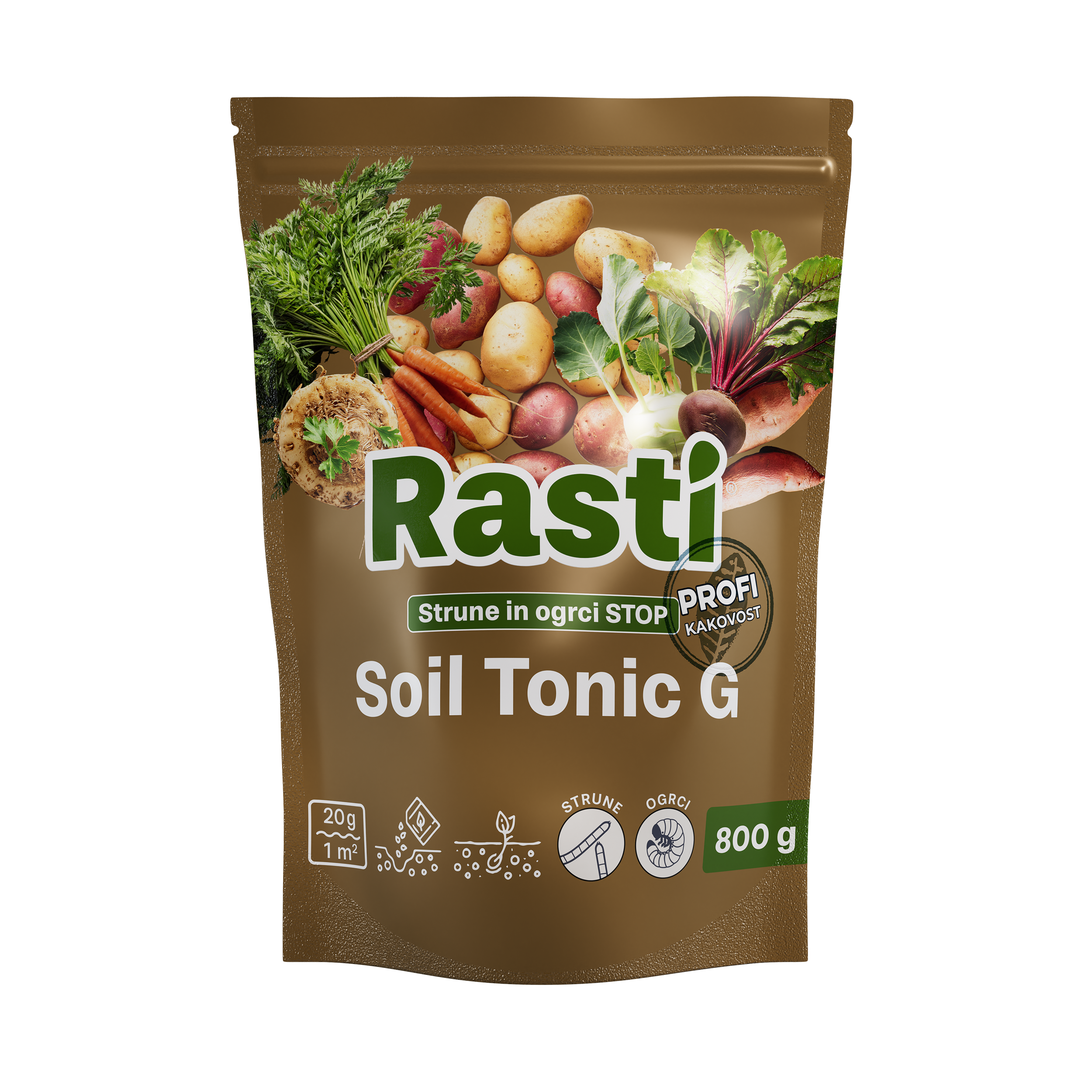 Rasti Soil Tonic G uporabljamo za zaščito posevkov, sadik in nasadov vrtnin, jagodičja ali okrasnih rastlin pred talnimi škodljivci, kot so strune in ogrci. Dovoljen je v EKO pridelavi.